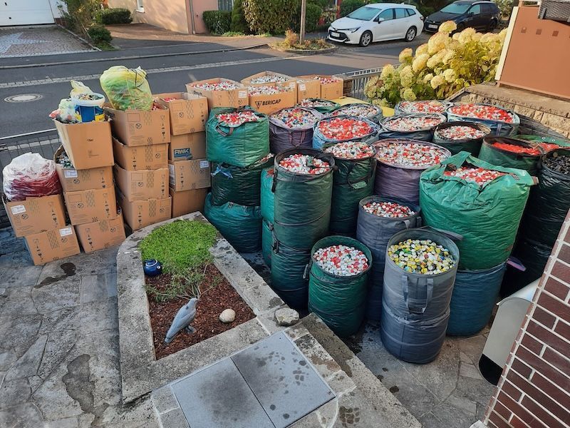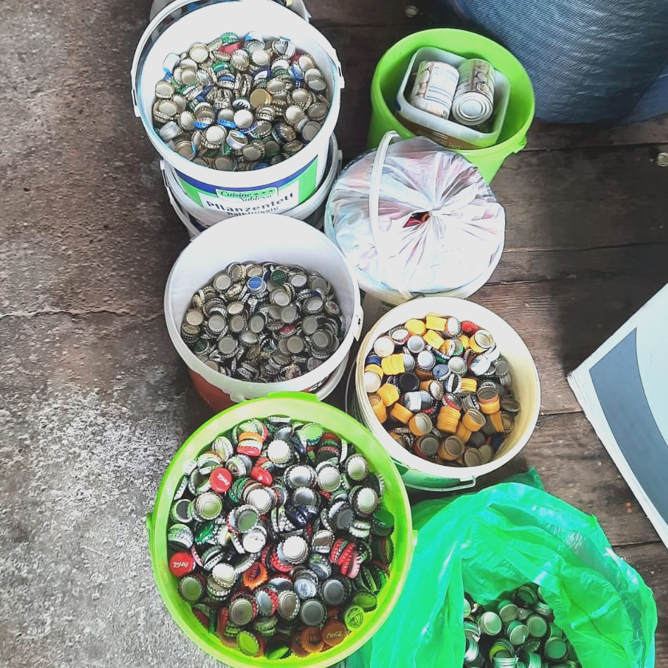 Jonas` Opa hatte sich Anfang 2022 einer Sammelaktion für krebskranke Kinder angeschlossen und durch sein Engagement über 2 Tonnen Kronkorken für den guten Zweck gesammelt.